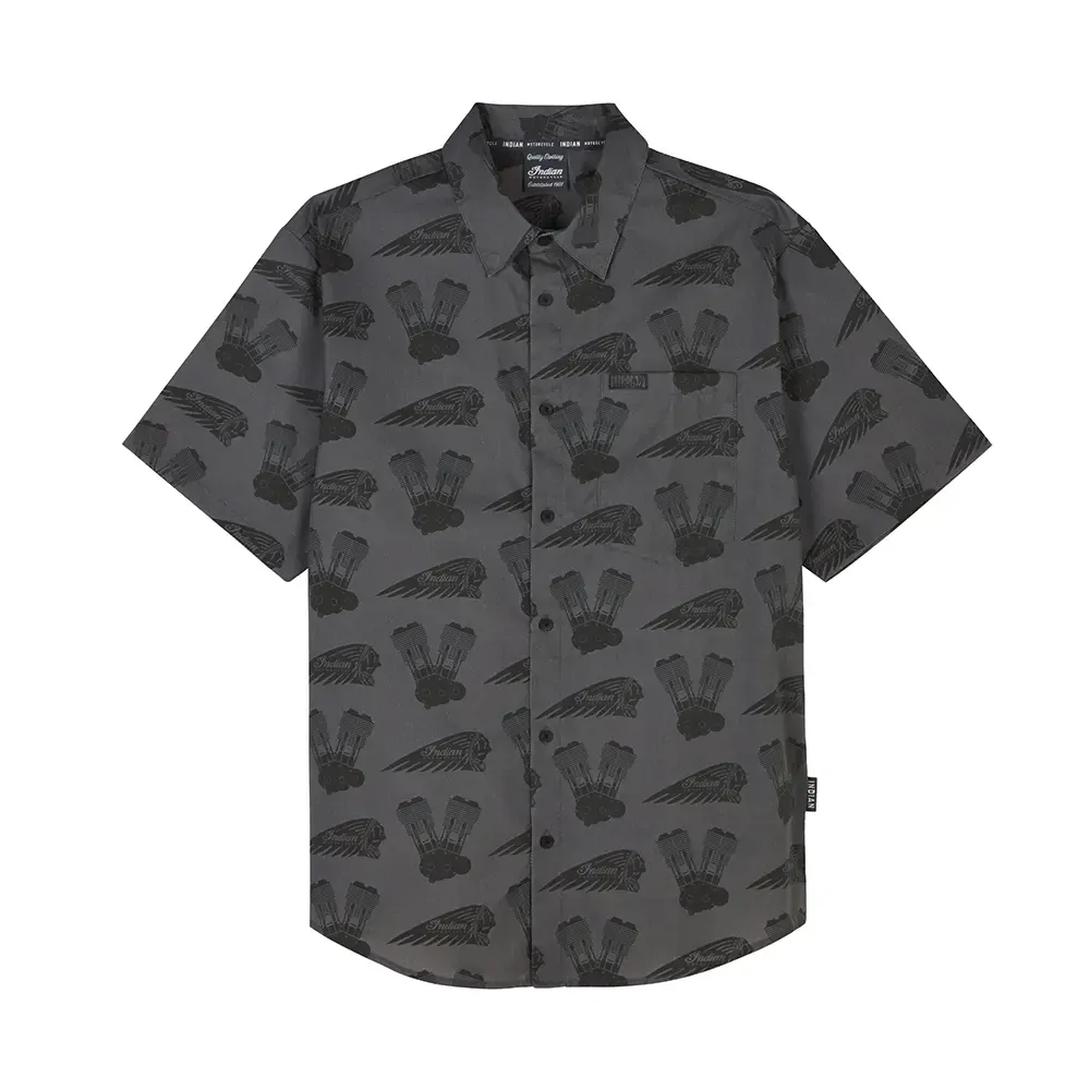 This unique button-up showcases an engine print design. Dress it up or down and showcase your Indian Motorcycle pride in every setting.