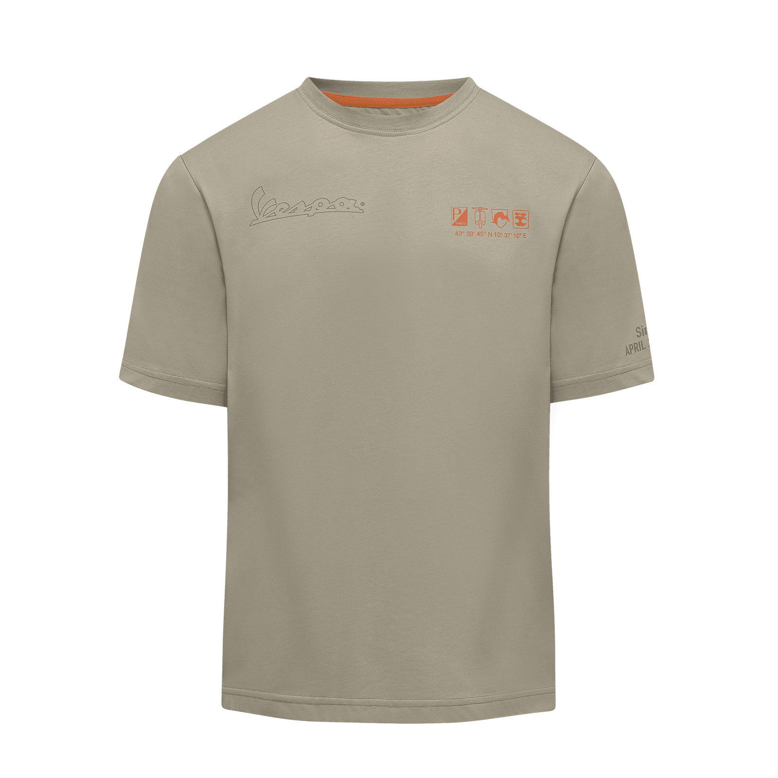 Wherever it is found, the Vespa logo is a distinctive element and this 100% cotton t-shirt is no exception. Featuring an exclusive printed inside label, its understated elegance is perfectly complemented by its iconic logo.