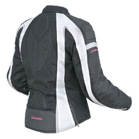 Ladies mesh jacket constructed of 600D polyester and 500D high flow mesh, offering ventilation with a high tensile strength for great abrasion resistance. The shoulders and elbows feature CE armour for impact protection, with a high density back pad to mitigate spinal injuries. All armour can be upgraded to CE Level 2 for maximum protection. For all weather protection, the Airstream includes a removable thermal liner, as well as a removable waterproof/breathable liner. This liner is rated to suit most Australian environments and will prevent water from pentrating the jacket material. Being breathable means it will allow hot air generated by the body to reduce the likelihood of sweating and to keep you comfortable while riding. Designed with a dedicated women's fit, the Airstream features arm and waist adjusters for comfort and reflective print for nighttime visibility. • Outer shell: 600D polyester and 500D mesh • CE armour and Hi-Density back pad • Detachable Reissa waterproof and breathable liner • Detachable thermal liner • Mesh comfort liner • Waist expander zips • Arm adjustment • Reflective for night-time safety • Pant connection zip • Max zips