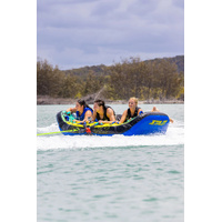 Bring on the family fun with the Jetpilot Wing 3 Person Towable Tube in Lime/Blue. Designed for up to three riders, this towable tube is perfect for families and groups looking to enjoy the water together.
